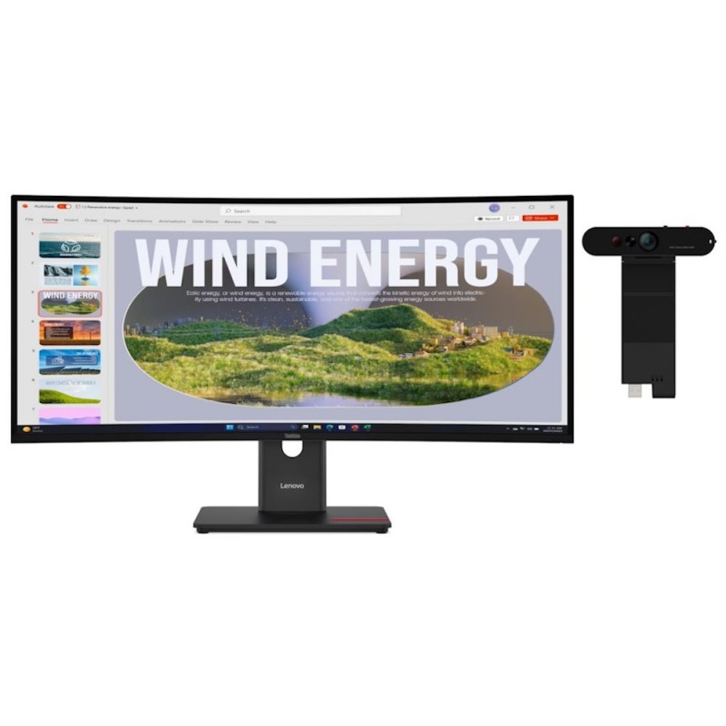 Monitor Lenovo ThinkVision T34WD-40 s webkamerou MC60 a prohnutým displejem, který je určen pro náročnou práci a multitasking. Velká obrazovka s úhlopříčkou 34 palců přehledně zobrazí několik aplikací a oken současně. Tím přispívá ke zvýšené produktivitu a nasazení ve firemní nebo domácí kanceláři. Zakřivený design podporuje panoramatické zobrazení a komfortní sledování po dlouhou dobu.
