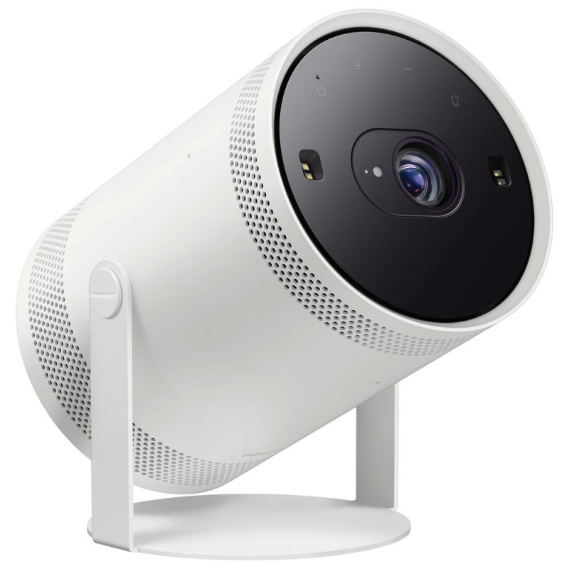 Přenosný DLP projektor s Full HD rozlišením, jasem 230 ANSI lumenů a kontrastním poměrem 100 000 : 1. Disponuje praktickým podstavcem pro nastavení ideální polohy, lze tak promítat na různé povrchy jen přizpůsobením vhodného úhlu. S automatickým přizpůsobením můžete projektor postavit na jakékoliv místo a obrazovka se automaticky optimalizuje. To odstraňuje nežádoucí zkreslení obrazu bez zbytečného přemisťování. Podpora HDR10+ a HLG zajistí kvalitní projekci s ostrými detaily. Dokáže promítat obraz s úhlopříčkou 30" až 100". Výkonný vestavěný reproduktor přináší bohatý 360° zvuk o výkonu 5 W. Díky podpoře funkcí Samsung Smart TV můžete přímo zrcadlit obraz televizoru na projektor. Navíc je k dispozici funkce Tap View, stačí se pomocí vašeho smartphonu zlehka dotknout jakéhokoliv místa na projektoru a můžete okamžitě zrcadlit obsah z vašeho displeje. Připojení je realizováno buď drátově pomocí micro HDMI nebo bezdrátově pomocí Wi-Fi a Bluetooth. Nabíjení je realizováno skrze USB-C port.