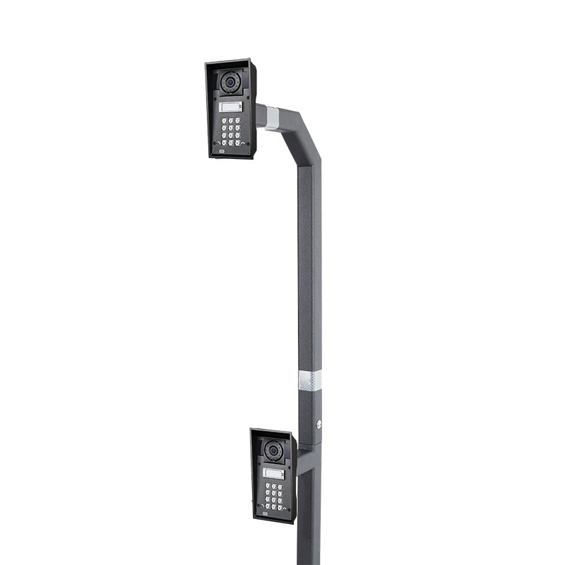 Masivní dvojitý kovový sloupek pro instalaci interkomů 2N Force a 2N Safety k vjezdovým branám, ke kterým jezdí osobní i nákladní automobily. Pro zvýšenou viditelnost v noci je sloupek opatřen reflexní páskou.