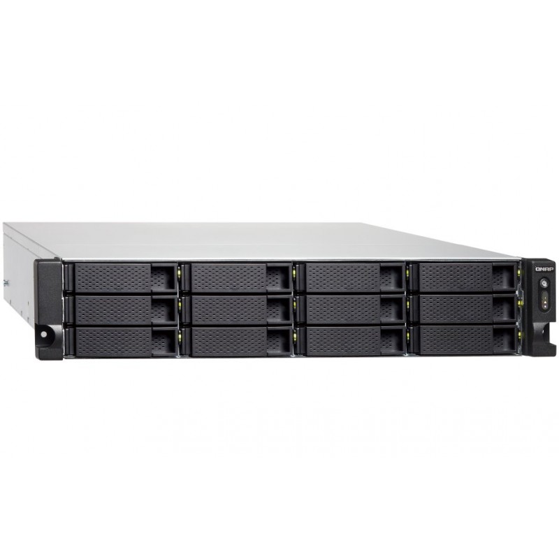 Výkonný síťový úložný systém je poháněný čtyřjádrovým procesorem Intel Xeon E-2124, pracujícím na frekvenci 3,3 GHz, doplněný o 8 GB RAM paměti, čtyři porty sítě Gigabit LAN a dva SFP+ sloty. K dispozici je 12 slotů pro 2,5/3,5" SATA disky. Pro připojení externích zařízení jsou přítomny čtyři porty USB 3.1 a dva porty USB-C. Zařízení je vybaveno redundantním napájecím zdrojem o výkonu 2× 300 W a pohání jej operační systém QTS 5.1.3.