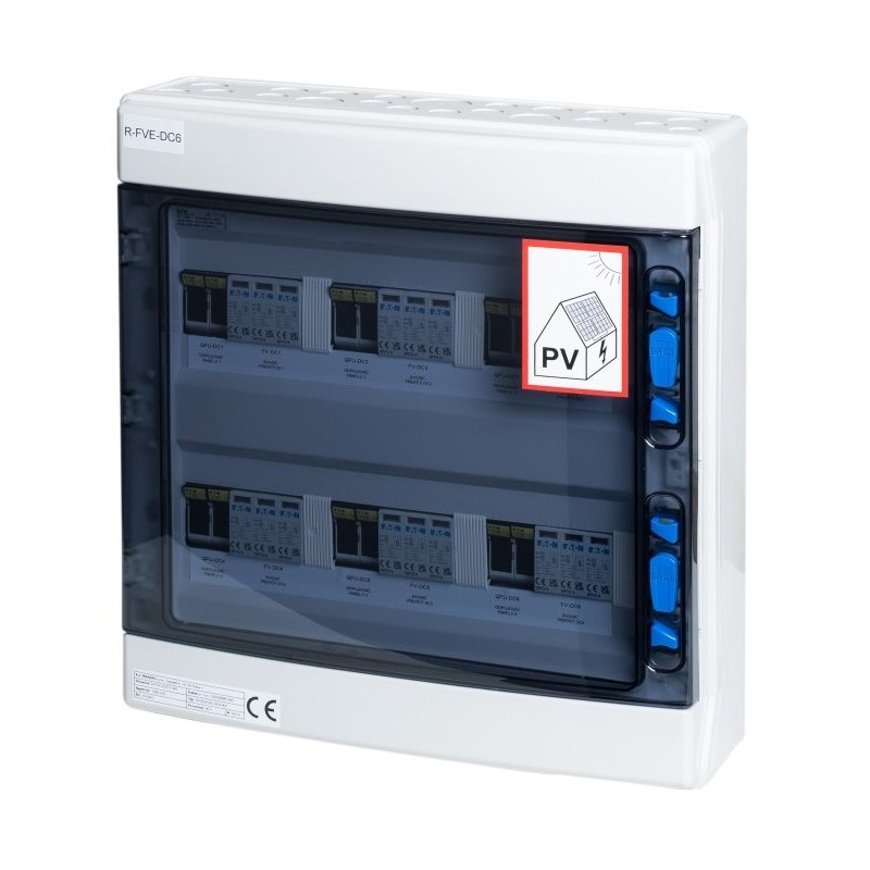 DC rozváděč určený pro montáž na zeď, IP65/20 sloužící jako vstupní rozváděč od fotovoltaických panelů (ke střídači) pro celé portfolio fotovoltaických elektráren.