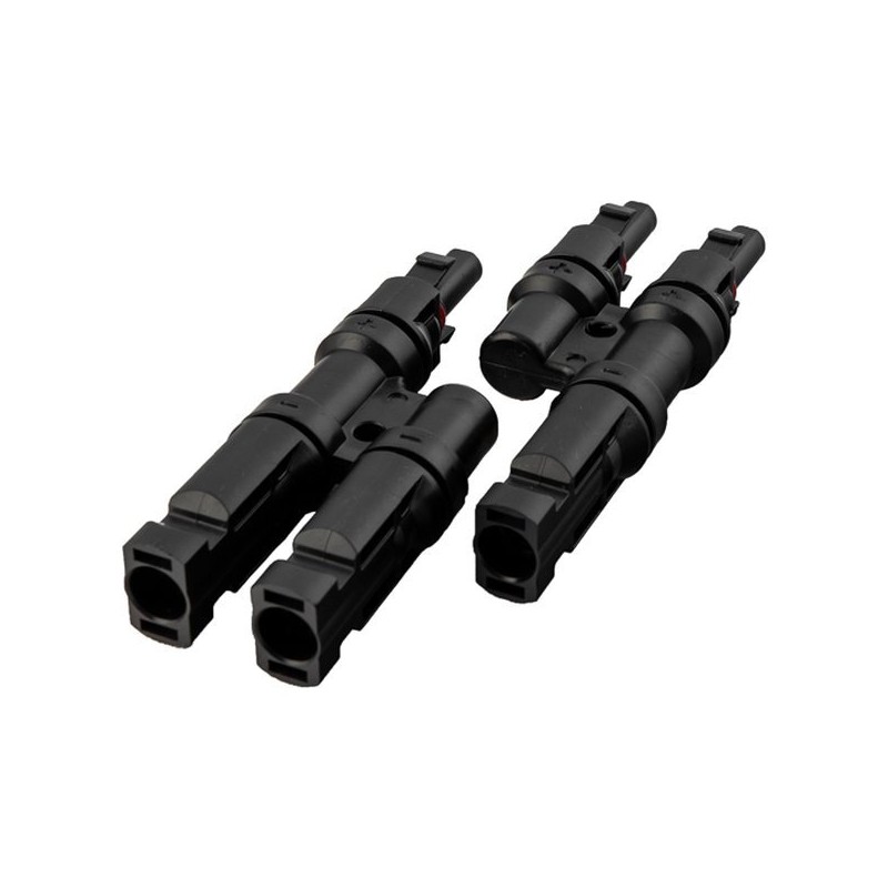 Speciální rozbočovací konektor pro kabeláž solárních aplikací. Je vyroben z vysoce pevného plastu a je opatřen gumovými těsnicími vložkami. Vhodný pro venkovní aplikace.