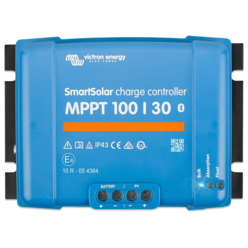 Robustní a rychlý MPPT regulátor pro náročné podmínky s napětím panelů až 100 V, maximální nabíjecí proud 30 A. Baterie 12/24 V, FV max. 440/880 Wp. Vestavěné Bluetooth a VE.direct rozhraní.