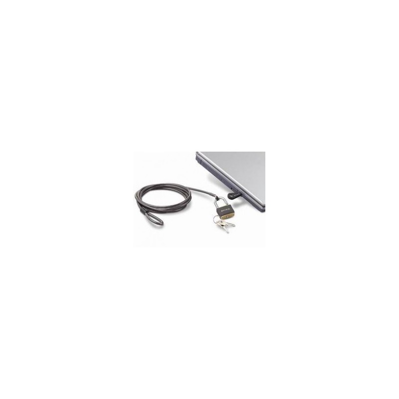 Zámek s 1,8m lankem pro zabezpečení notebooku, přenosného disku, PC, monitoru… Obsahuje vysoce odolné galvanizované ocelové lanko, zámek se 2 klíči a pouzdro na transport. Použitelné pro většinu notebooků s otvorem pro zajištění.