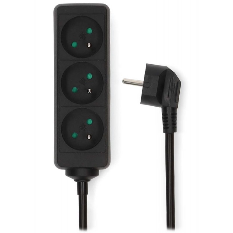 Tato prodlužovací zásuvka je vhodná k rozdělení zásuvky do tří napájecích bodů. Je vybavena 1,5 m dlouhým kabelem k napájení elektrických zařízení kdekoli doma nebo v kanceláři. Díky kontaktnímu úhlu 45° je tato napájecí lišta vhodná i pro úhlové zástrčky.