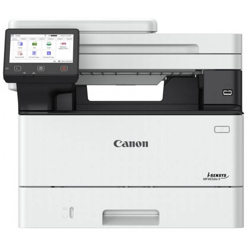Multifunkční zařízení Canon i-SENSYS MF465dw II kombinuje rychlý černobílý laserový tisk až 40 str./min s pokročilými funkcemi kopírování, skenování a faxování. Vybaveno oboustranným automatickým podavačem dokumentů na 50 listů umožňuje efektivní zpracování vícestránkových dokumentů s rychlostí skenování až 100 obr./min v černobílém režimu.