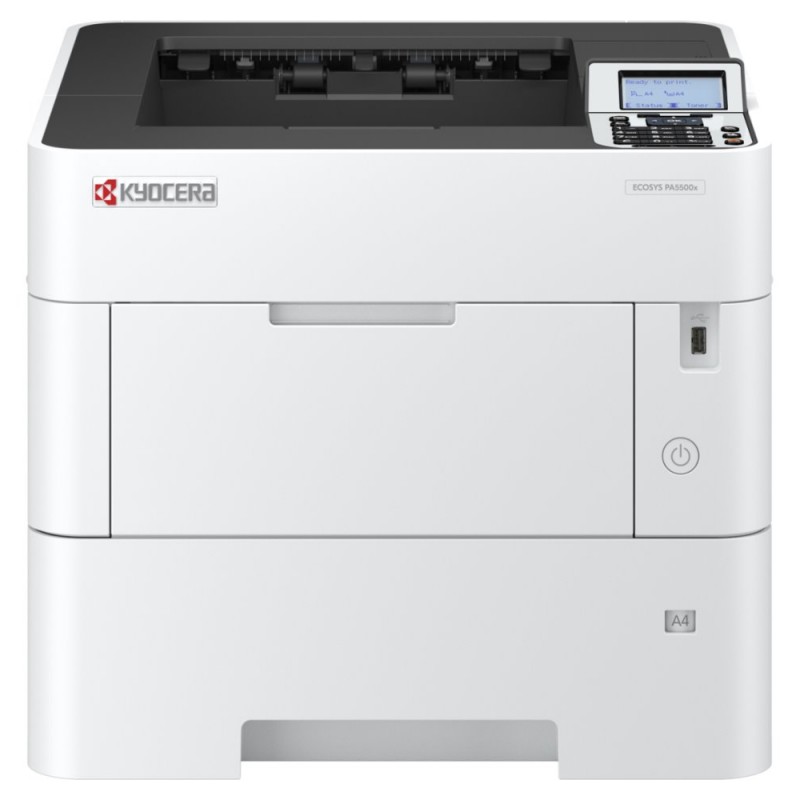 Výkonná černobílá tiskárna Kyocera ECOSYS PA5500x produkuje dokumenty rychlostí až 55 stran za minutu. Ve spojení s funkcí automatického oboustranného tisku výrazně přispívá ke zvýšení pracovní produktivity a efektivní úspoře provozních nákladů. Svým výkonem se uplatní ve firemní kanceláři a větších pracovních skupinách. Komponenty se vyznačují zvýšenou odolností a podporují dlouhotrvající a stabilní provoz. Snadnou správu a nastavení tiskových úloh zajišťuje LCD displej s tlačítky. Potěší také přítomnost dvojice USB portů pro přímý tisk médií z přenosných USB zařízení.