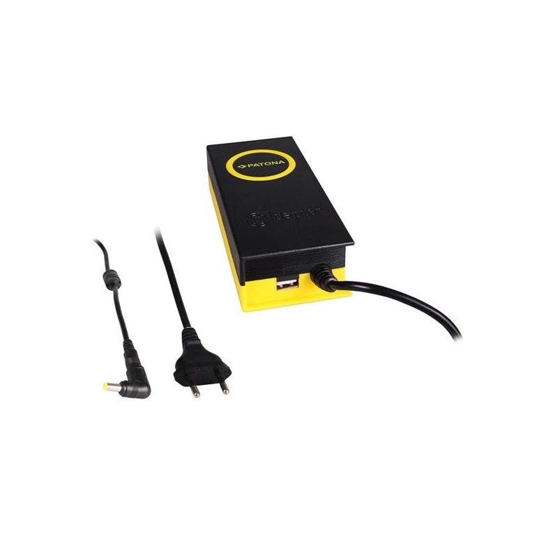 Napájecí adaptér PATONA s výkonem 90 W pro vybrané modely noteboků. Na adaptéru je k dispozici také USB port pro nabíjení vašich mobilních zařízení.