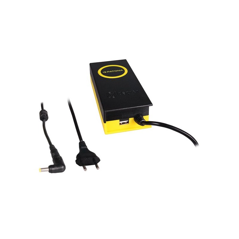 Napájecí adaptér PATONA s výkonem 90 W pro vybrané modely noteboků. Na adaptéru je k dispozici také USB port pro nabíjení vašich mobilních zařízení.