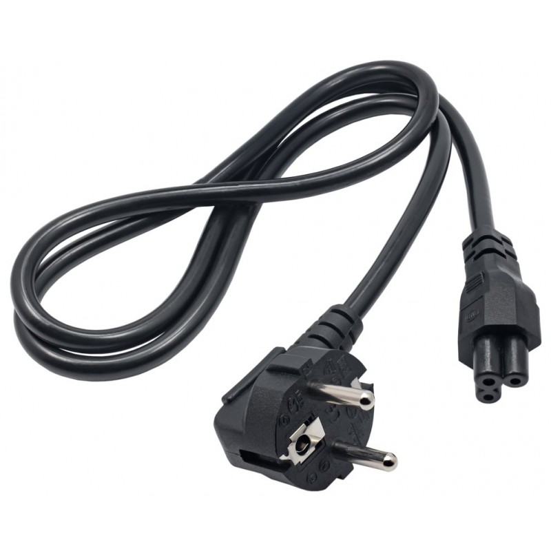 Přívodní síťový kabel pro napájení notebooků, napájecích zdrojů, počítačového příslušenství, monitorů atd. s 3pinovou koncovkou IEC C5. Délka kabelu je 1 m.