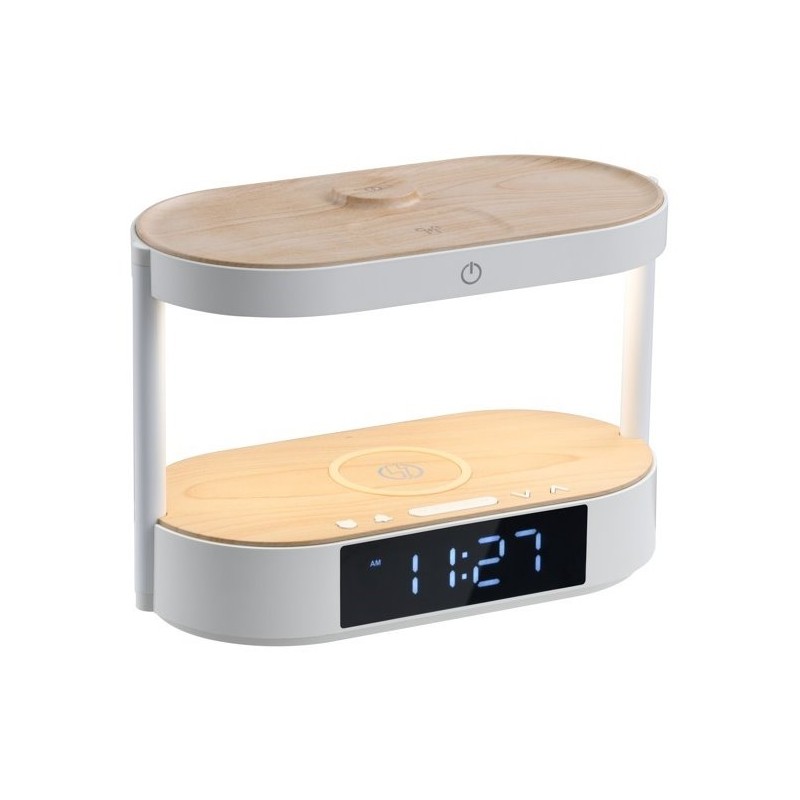 Stylový LED budík s integrovanou 3 v 1 bezdrátovou nabíjecí stanicí pro smartphony a Apple zařízení