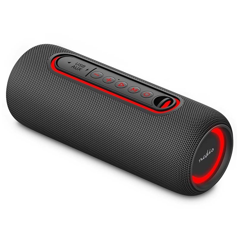 Bluetooth reproduktor Nedis SPBT2460BK představuje silné ideální ozvučení na cesty. Je kompaktní, snadno přenosný a dosahuje výkonu 30 W (10 W RMS). Díky tomu si kvalitní audio užijete v patřičné síle, ať už jen posloucháte oblíbené skladby a mluvené slovo, nebo pořádáte venkovní párty. Dynamicky blikající RGB LED osvětlení navodí také potřebnou atmosféru. Vše vměstnáno do prémiové konstrukce potažené elegantní tkaninou.