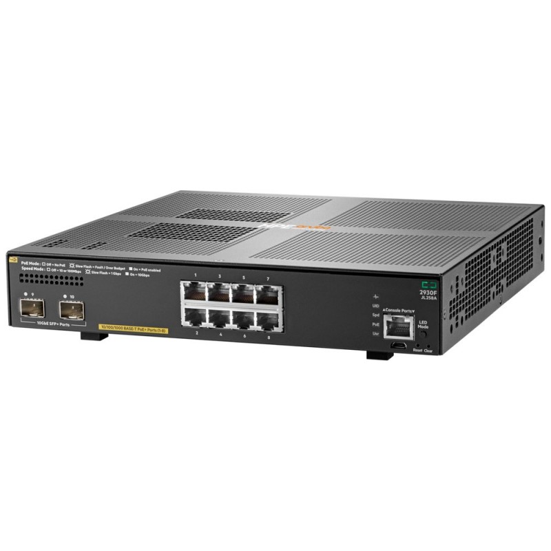Spravovatelný switch s 8× 10/100/1000 Mbps RJ-45 porty s podporou PoE+ napájení celkem až 125 W a 2× 1/10 GbE SFP+ sloty pro uplink. Nabízí přepínací kapacitu 56 Gbps a propustnost až 41,7 Mpps. Díky podpoře nízké latence (< 3,8 µs při 1 GbE, < 2,9 µs při 10 GbE), pokročilé správě a výkonnému hardwaru je ideální volbou pro moderní digitální pracovní prostředí. Switch je vhodný pro centralizovanou správu přes platformy jako AirWave, IMC či webové rozhraní.