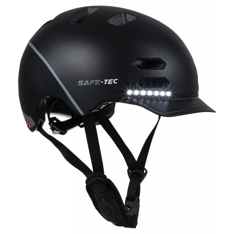 Chytrá helma pro zvýšení vaší bezpečnosti při sportu. Inovativní řešení přináší zabudované vysoce svítivé přední a zadní LED světla. Spínačem na zadní straně přilby volíte požadovaný režim světel. Vestavěné stereo reproduktory využívají přenos zvuku po kosti a umožní tak poslech hudby bez krytí okolního ruchu. V popruhu pod bradou je umístěný mikrofon pro bezpečné vyřízení hovorů. Helmu spojíte s vaším mobilním telefonem bezdrátově díky Bluetooth. Fidlock magnetické zapínání umožňuje rychlé sundání a nasazení helmy. Nabíjení integrované baterie je realizováno skrze USB-C konektor.