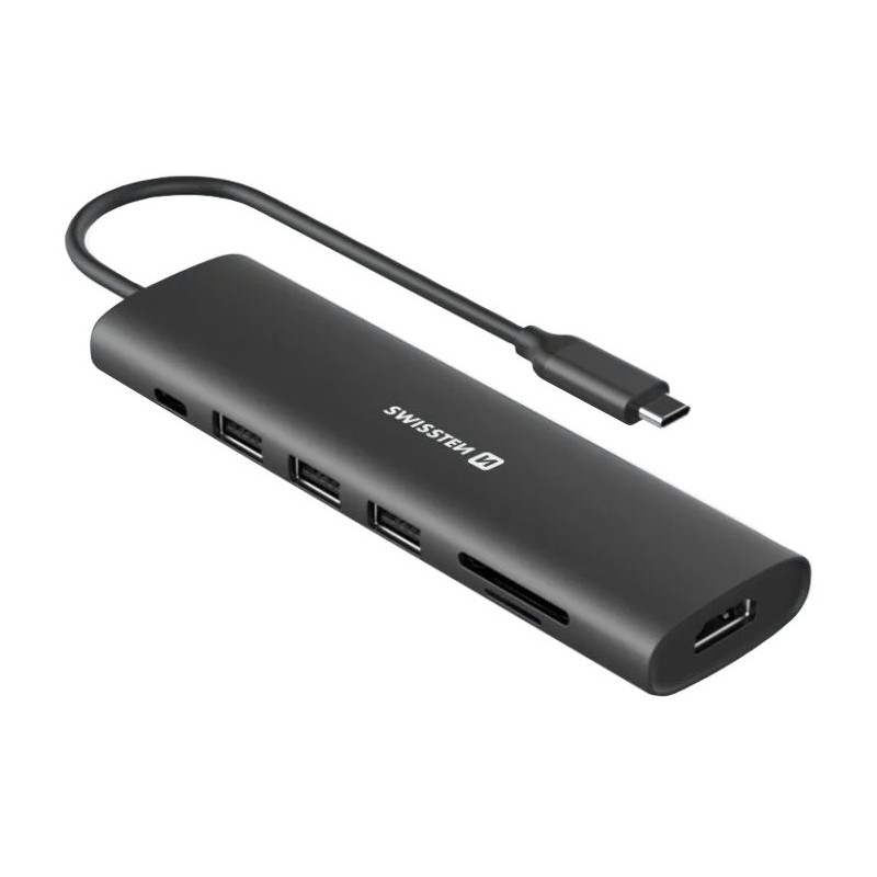 Odolná a kompaktní dokovací stanice SWISSTEN USB-C HUB 7v1, se kterou rozšíříte konektivitu svého notebooku nebo tabletu. Poskytne vám celkem 7 portů pro připojení periferních zařízení, které potřebujete pro flexibilní pracovní činnost i multimediální zábavu. Dokovací stanice SWISSTEN USB-C HUB 7v1 44040202 připojuje pomocí portu USB-C, disponuje rozhraním HDMI, které podporuje rozlišení 4K při 30 Hz, USB 3.0 portem s vysokou přenosovou rychlostí pro připojení flash disku, USB-C pro napájení s technologií Power Delivery a dvojicí portů USB 2.0. Nechybí ani praktická čtečka SD karet, respektive microSD karet. Díky kompaktnímu hliníkovému designu se snadno přenáší, a tak základní porty můžete využívat kdekoli na cestách.