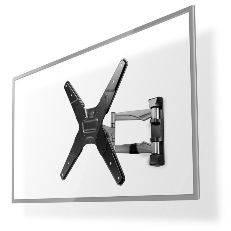Tento profesionální nástěnný držák kombinuje pevnou ocelovou konstrukci s luxusními hliníkovými rameny a nabízí kompletní pohyblivost vašeho televizoru. Díky třem otočným bodům umožňuje otáčení až 180° a nastavení vzdálenosti od stěny v rozsahu 48–410 mm. Držák je vybaven funkcí naklápění o 20° pro optimální pozorovací úhel a vyrovnáváním až o 3° pro perfektní horizontální polohu.