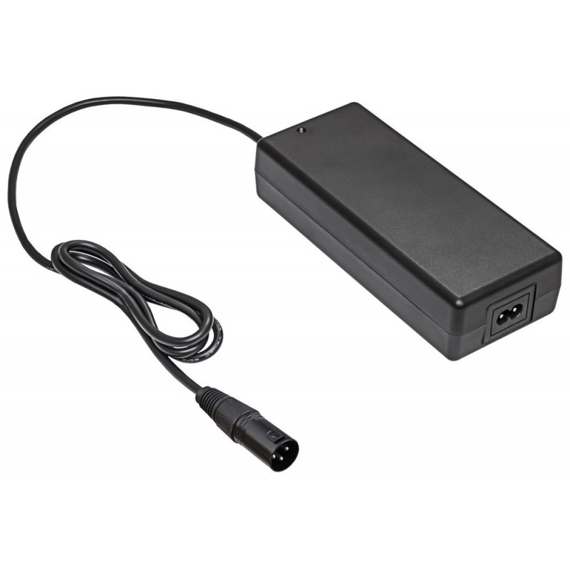 Napájecí adaptér o výkonu 110 W pro elektrokola a elektrokoloběžky s lithium-iontovou baterií s napětím 48 V. Zařízení je vybaveno oblíbenou vstupní zásuvkou IEC C8. Výstupní kabel nabíječky (dlouhý 1 m) je zakončen zástrčkou Cannon XLR, která se vyznačuje vysokou odolností proti mechanickému poškození. Přívodní síťový napájecí kabel není součástí balení.