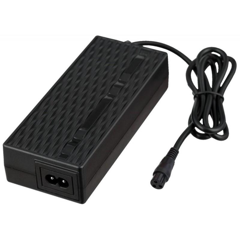 Napájecí adaptér o výkonu 110 W pro elektrokola a elektrokoloběžky se 48V baterií. Zařízení je vybaveno oblíbenou vstupní zásuvkou IEC C8. Výstupní kabel nabíječky (dlouhý 1 m) je zakončen zástrčkou Mini XLR (F). Přívodní síťový napájecí kabel není součástí balení.