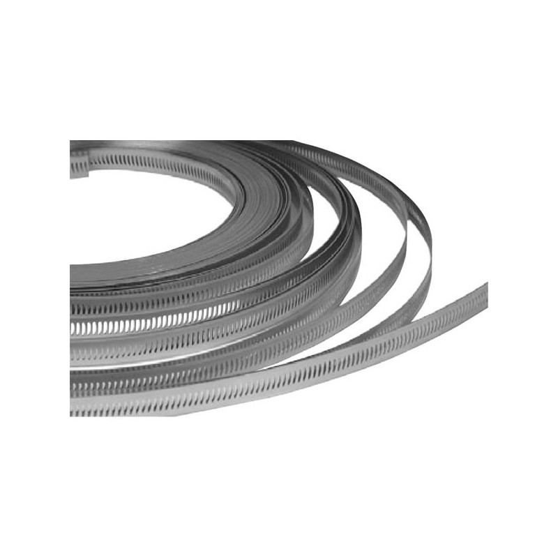 Nerezová perforovaná páska 14 mm o tloušťce 0,6 mm. Maximální doporučené zatížení páskou namontovaného rozvaděče je 50 kg.