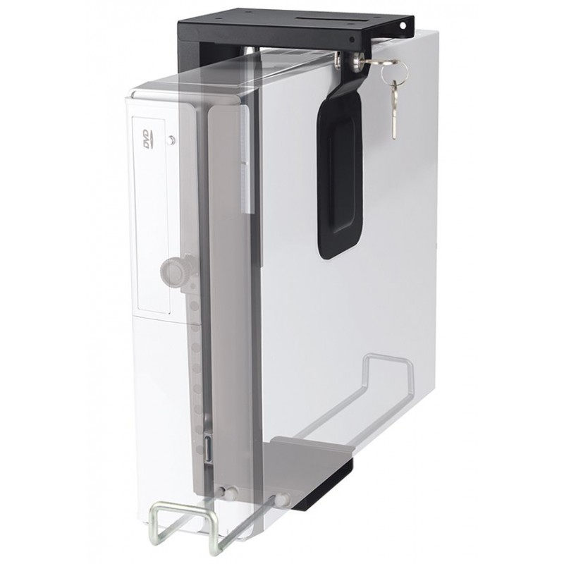 Držák pro vertikální montáž počítače pod stůl a jeho zajištění pomocí uzamykacího systému. Nabízí snadno nastavitelnou šířku a výšku pro většinu stolních a věžových počítačů. Maximální nosnost je 10 kg. Veškerý instalační materiál je součástí výrobku.