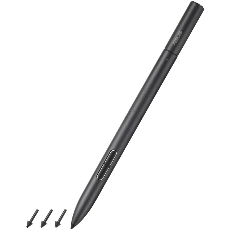 Aktivní dotykové pero ASUS Pen 2.0 je ideální pro psaní poznámek či kreslení na dotykovém displeji. Pracuje s technologií MPP 2.0, která nabízí velmi krátkou latenci a rychlou odezvu. Citlivost až 4096 úrovní tlaku a síla hrotu pera 5 až 350 g vám umožní zaznamenat nejjemnější linie i široké tahy štětcem. Stylus podporuje párování přes Bluetooth pomocí jednoho kliknutí a nabízí několik přednastavených zkratek pro snadnější ovládání. Funkční tlačítka zahrnují jedno horní tlačítko pro klávesové zkratky a dvě boční tlačítka určená pro klikání myší a mazání. Nabíjení je řešeno pomocí USB-C konektoru pro rychlé nabití za 30 minut, které zajistí více než 140 hodin provozu.