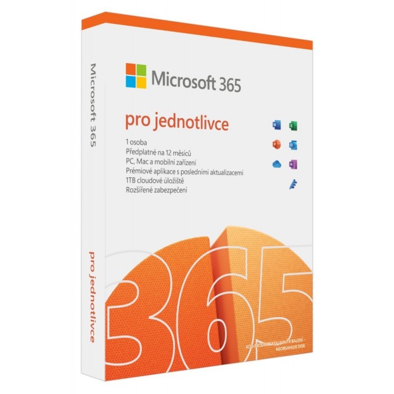Microsoft 365 pro jednotlivce umožňuje nainstalovat nejnovější plné verze počítačových aplikací Word, Excel, PowerPoint, OneDrive, OneNote, Outlook, Defender, Designer a Clipchamp. Licence je určena pro jednoho uživatele.