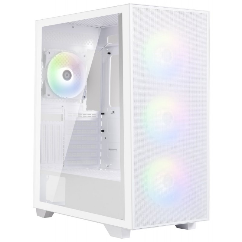 Kvalitní počítačová skříň formátu Middle Tower nabízí čtyři 2,5" a dvě 3,5" pozice pro SSD a pevné disky. Skříň je vybavena průhlednou bočnicí a poloprůhledným čelem s perforací pro optimální proudění vzduchu. Předinstalovány jsou čtyři 120mm ventilátory s FRGB podsvícením. Na horním panelu se nachází dva porty USB 3.0, jeden port USB 2.0, sluchátkový výstup a audio vstup pro mikrofon. Ve skříni je dostatek prostoru pro chladič CPU do výšky až 170 mm a grafickou kartu o délce až 355 mm. Důmyslné řešení umožňuje pohodlné umístění až 360 mm dlouhého výměníku vodního chlazení na přední straně. Potěší také přítomnost prachových filtrů. Skříň je dodávána bez zdroje.