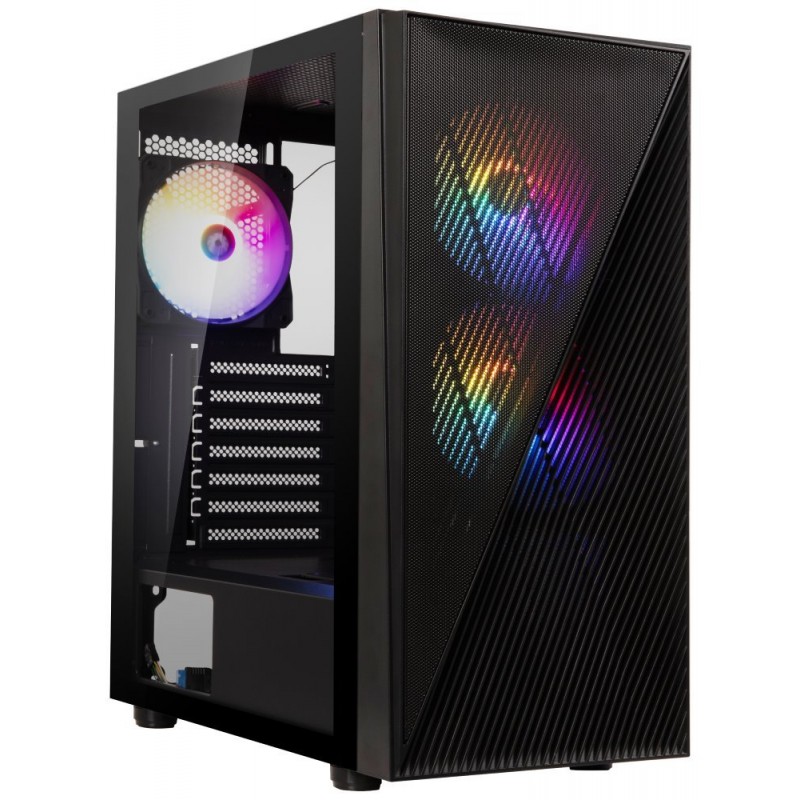 Moderní počítačová skříň s průhlednou bočnicí z tvrzeného skla. Formát Middle Tower nabízí dostatek prostoru pro uložení až čtyř disků. Na horním panelu se nachází dva USB 3.0 porty, jeden USB 2.0 port, sluchátkový výstup a audio vstup pro mikrofon. Skříň je vybavena čtyřmi 120mm ventilátory se statickým RGB podsvícením. Ve skříni je dostatek prostoru pro chladič CPU do výšky až 160 mm a grafickou kartu o délce až 345 mm. Skříň je dodávána bez zdroje. Součástí je také magnetický prachový filtr.