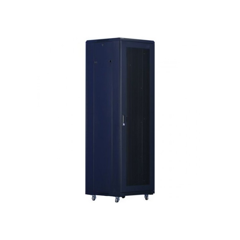 19" rozvaděč, stojanový, výška 47U, šířka 800 mm, hloubka 1000 mm. Černá barva. Perforované zadní, přední dvoukřídlé dveře a horní kryt. Rozebíratelný a snadno smontovatelný. Včetně zemničů.