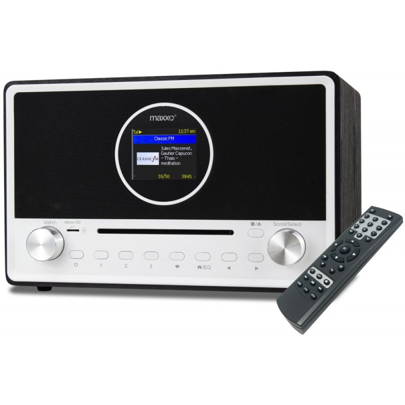 Kompaktní internetové rádio Maxxo CD03, který se stane ideálním společníkem pro poslech hudby a rozhlasového vysílání v kuchyni, obývacím pokoji, na verandě nebo kdekoli na cestách. Kromě tradičních FM stanic vám zprostředkuje také vysílání v digitální kvalitě DAB+ pro čistý příjem bez šumu a praskání. Po připojení k Wi-Fi síti si dopřejete také poslech internetového rádia a možnost poslechu stanic z celého světa nebo úzce specializovaných rádií. Díky Bluetooth se tento model Maxxo CD03 uplatní také jako bezdrátový reproduktor při streamování obsahu ze smartphonů nebo tabletů.