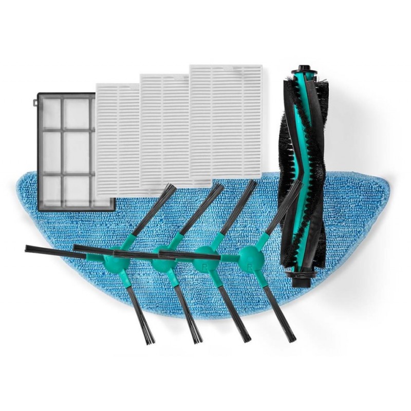 Sada náhradních dílů k vysavači Nedis WIFIVCL001CBK. Balení obsahuje 3× HEPA filtr, 1× hlavní filtr, 1× otočný kartáč, 2× sada bočních kartáčů, 1× mop.