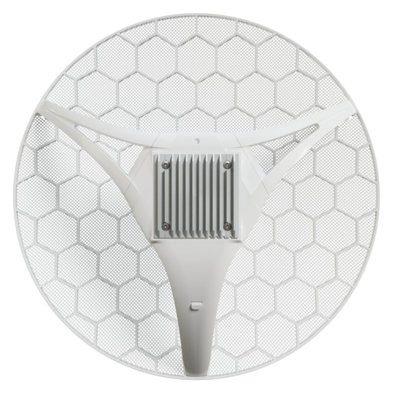 Anténa je vybavena 2jádrovým ARM procesorem 88F3720 s frekvencí 800 MHz, 256 MB DDR3L RAM a gigabitovým Ethernet portem s podporou PoE-In (802.3af/at). Mřížková konstrukce s rozměry 391 × 391 × 227 mm minimalizuje zatížení větrem při zachování vysokého zisku antény. Provozní teplotní rozsah -40 až +70 °C a masivní chladič zajišťují spolehlivý provoz i v extrémních podmínkách.