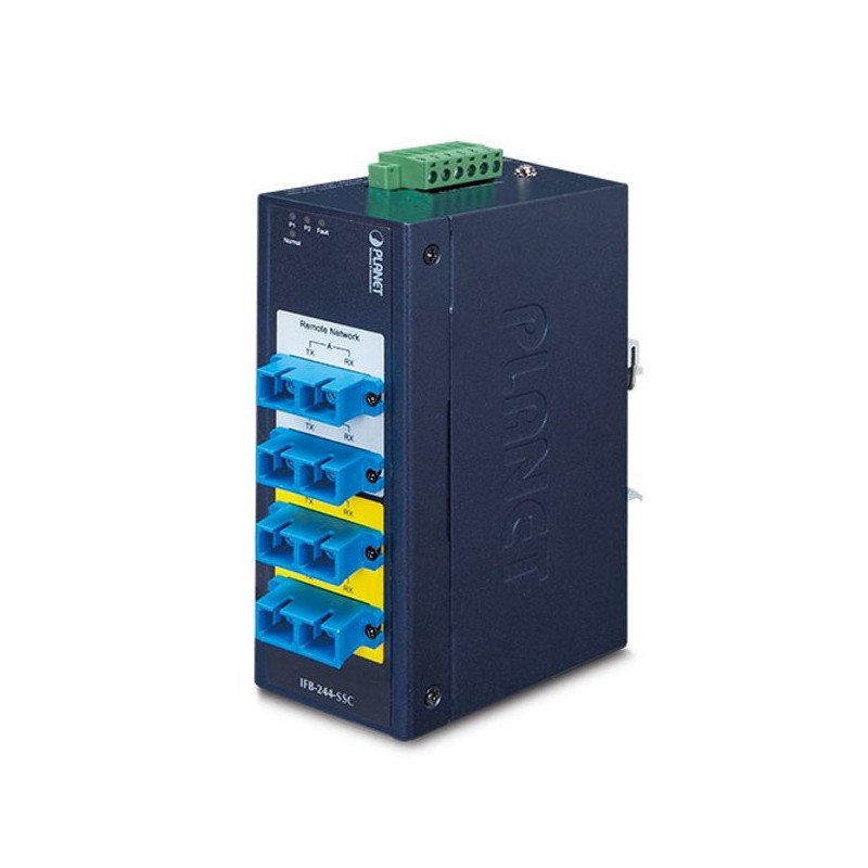 Průmyslový optický bypass přepínač (4 x SC duplex singlemode konektor), který chrání síť před selháním a zajišťuje integritu sítě při výpadku napájení.