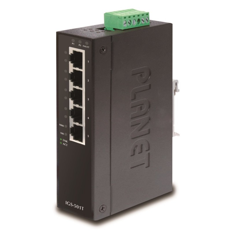5portový přepínač a konvertor pro průmyslové aplikace. 5 portů 1000Base-T.