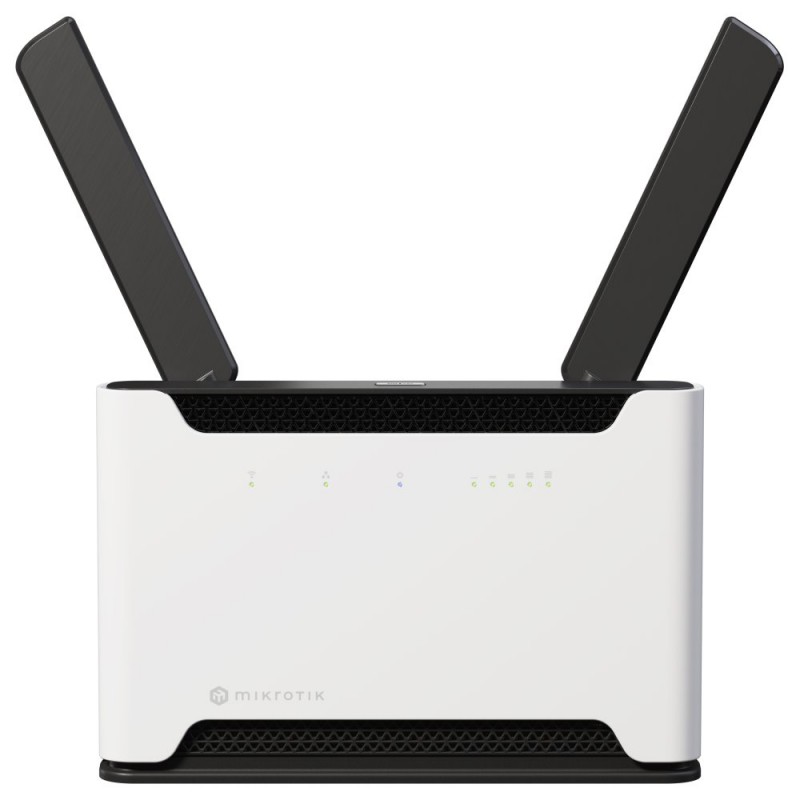 Domácí vysokorychlostní LTE ax router 6. generace pracující v pásmech 2,4 a 5 GHz + LTE (kategorie 18). Podporuje standard 802.11a/b/g/n/ac/ax + Wave 2 a TR-069 pro vzdálenou správu. Dvě externí antény se ziskem 3 a 6 dBi zajišťují stabilní bezdrátové připojení a optimální pokrytí. MikroTik Chateau LTE18 ax disponuje čtyřmi GbE porty, jedním 2.5G portem, jedním USB 3.0 portem a microSIM slotem.